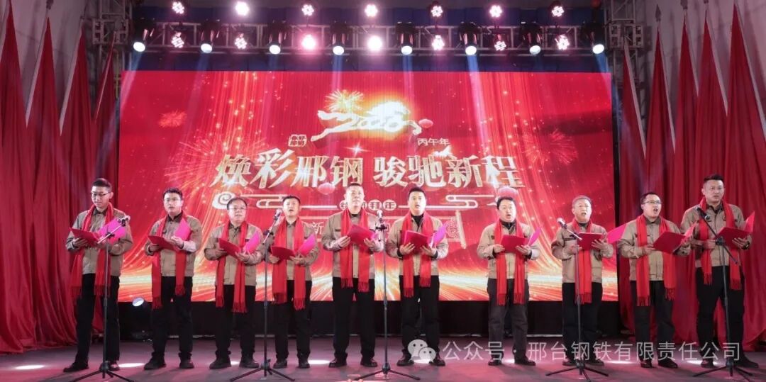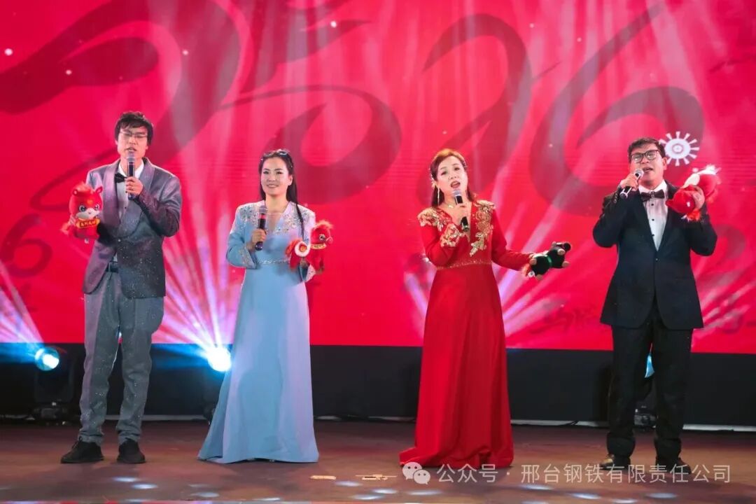 张育明董事长在联欢会上发表了新春致辞,代表公司、公司党委向全体员工致以新春祝福。他说,2025年,面对复杂的市场环境与环保压力,邢钢坚守安全底线,苦练内功,降本增效,全力保障高炉稳定生产,实现全年产销平衡;多项技术成果达到国际先进水平,新研发的一批技术含量更高、产品性能更优的高端钢种推向市场,进一步巩固了邢钢品牌的影响力;新厂区建设按计划统筹施工,炼铁、炼钢区域加快推进,大盘卷项目热轧成功,邢钢在向“创新、智能、绿色、低碳”转型的道路上迈出了坚实步伐。2026年,我们要统一思想,凝聚力量,以更加坚定的信心,以更高的站位,着眼当前,谋划长远;围绕老厂区生产经营稳定和新厂区建设投产两项重点工作,筑牢安全和环保工作的根基,抓住“稳产、提质、降本”这一主线,提升运营效率与风险防控能力;以更超前的视野、更严苛的工艺标准推进产品研发,聚焦“高、精、尖、特”,进一步巩固企业的核心竞争力;锚定投产目标,全力以赴推进新厂区建设,把新邢钢打造成高端化、智能化、绿色化的国际特钢长材标杆企业。