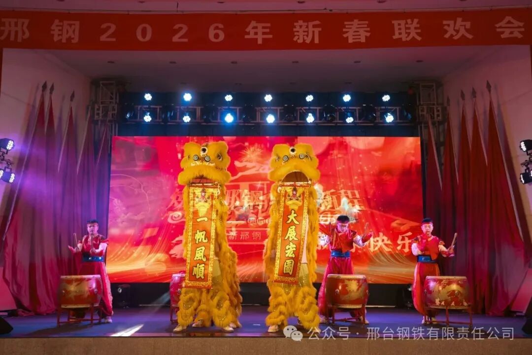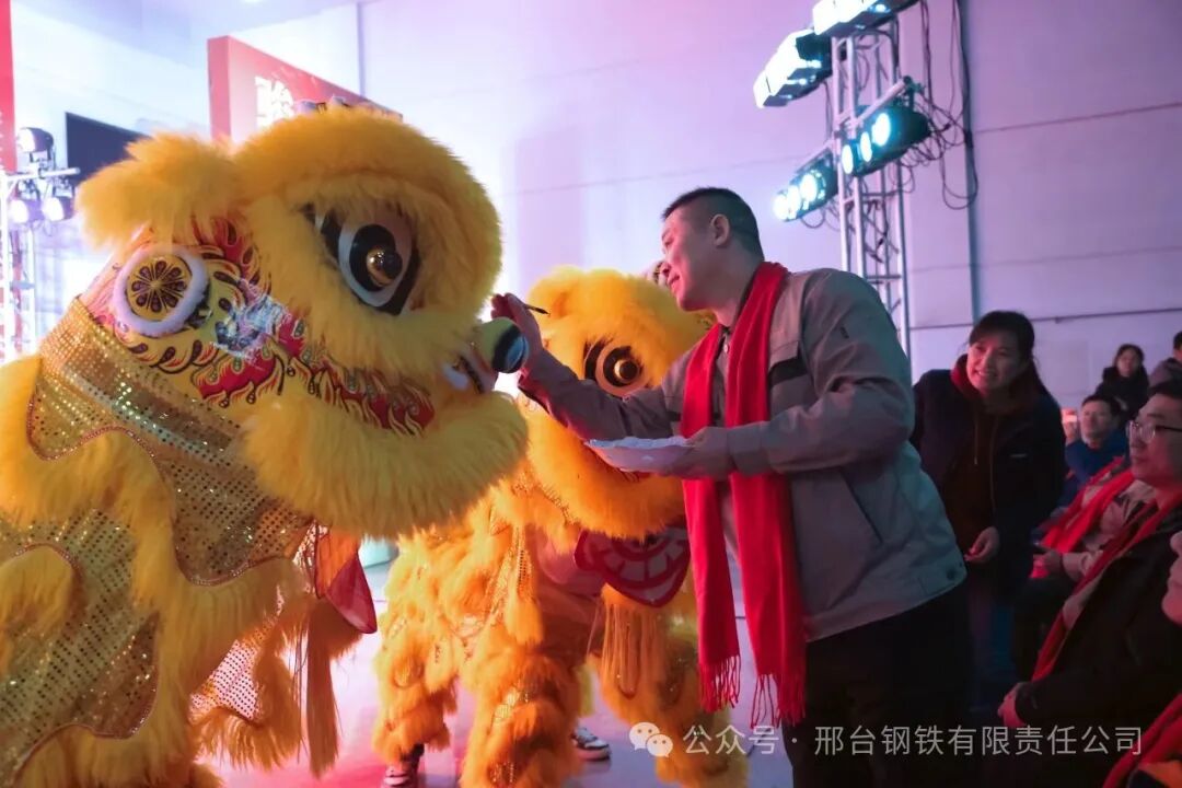 联欢会在邢钢搬迁项目指挥部的狮鼓表演《盛世欢歌》中拉开帷幕,张育明董事长为瑞狮点睛,预示着为新邢钢带来蓬勃朝气与吉庆福运!