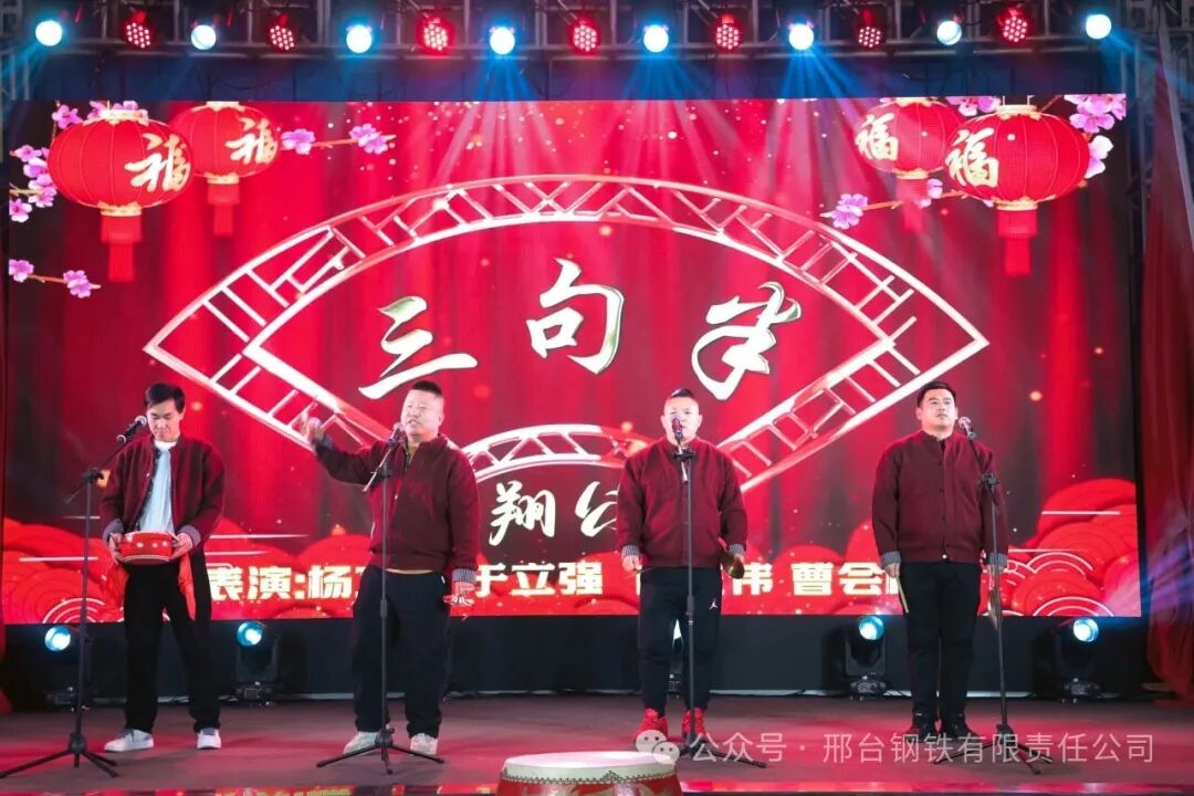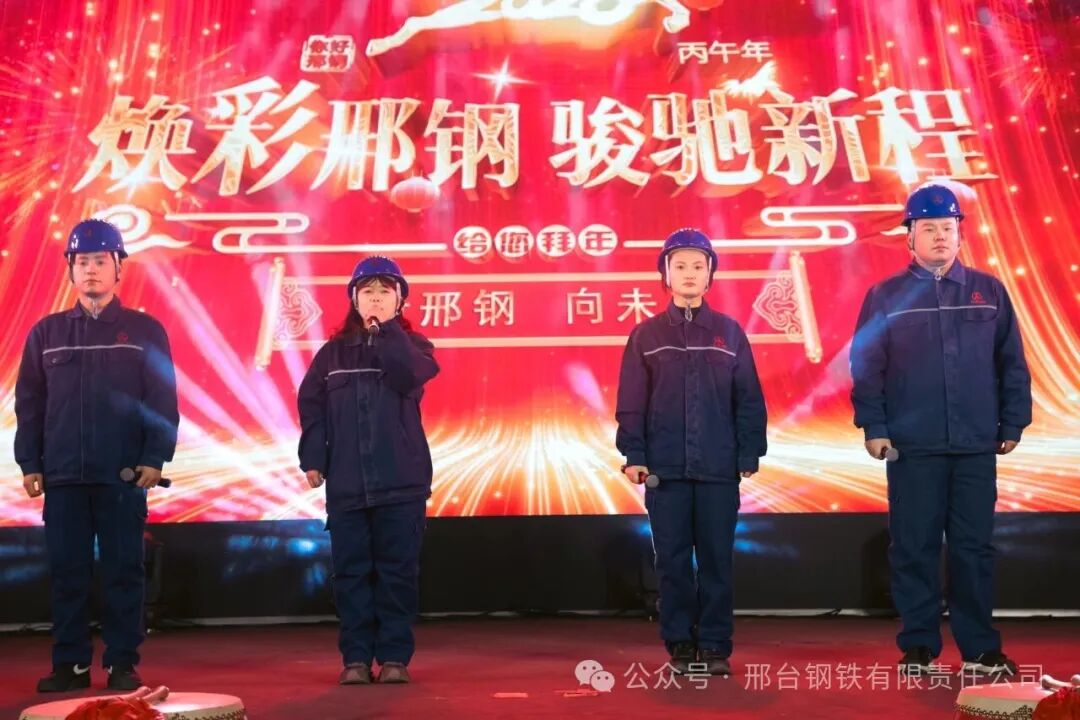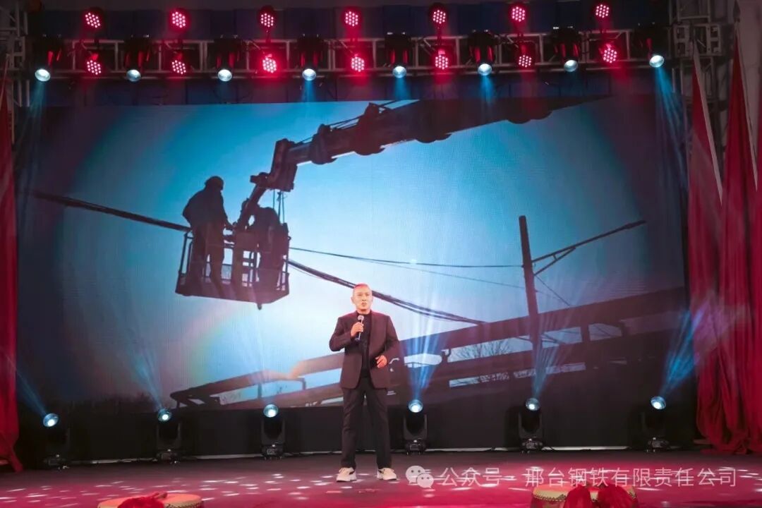 张育明董事长在联欢会上发表了新春致辞,代表公司、公司党委向全体员工致以新春祝福。他说,2025年,面对复杂的市场环境与环保压力,邢钢坚守安全底线,苦练内功,降本增效,全力保障高炉稳定生产,实现全年产销平衡;多项技术成果达到国际先进水平,新研发的一批技术含量更高、产品性能更优的高端钢种推向市场,进一步巩固了邢钢品牌的影响力;新厂区建设按计划统筹施工,炼铁、炼钢区域加快推进,大盘卷项目热轧成功,邢钢在向“创新、智能、绿色、低碳”转型的道路上迈出了坚实步伐。2026年,我们要统一思想,凝聚力量,以更加坚定的信心,以更高的站位,着眼当前,谋划长远;围绕老厂区生产经营稳定和新厂区建设投产两项重点工作,筑牢安全和环保工作的根基,抓住“稳产、提质、降本”这一主线,提升运营效率与风险防控能力;以更超前的视野、更严苛的工艺标准推进产品研发,聚焦“高、精、尖、特”,进一步巩固企业的核心竞争力;锚定投产目标,全力以赴推进新厂区建设,把新邢钢打造成高端化、智能化、绿色化的国际特钢长材标杆企业。