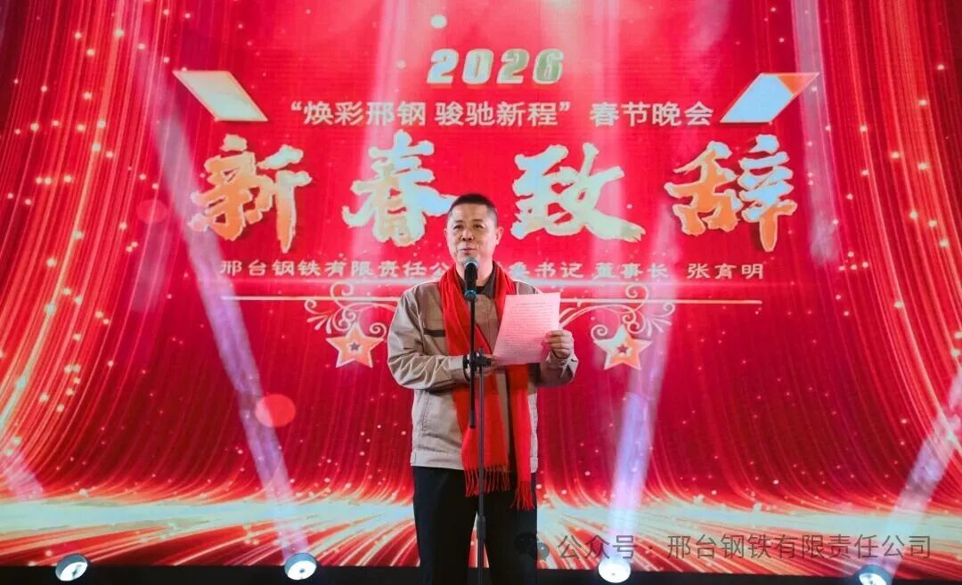 新征程,新目标,新跨越。2月6日,公司在会议中心举办“焕彩邢钢,骏驰新程”2026年新春联欢会。公司党委书记、董事长张育明携公司全体中高层领导与2025年受表彰的先进个人、员工代表欢聚一堂,共话邢钢大业,喜迎丙午年新春。